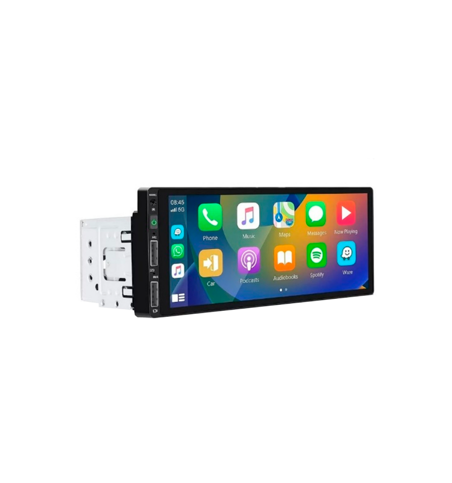 Equipo multimedia AutoCross AC 5 1 din. Pantalla táctil capacitiva de 6.8" en formato apaisado con resolución de 800x480. Sistema operativo Linux con Play Store y Google Maps instalados. Bluetooth con audiostreaming. Radio FM RDS con 18 memorias. 4 salidas de altavoz de 45w. Con Mirrorlink para android auto y apple car play (por cable). 2 entradas de USB (1 reproducción, 1 carga), 1 entrada Tipo C. Micro SD. Entradas Audio-in, salida RCA, AM/FM, entrada de video y entrada para cámara de marcha atrás y frontal. Iluminación multicolor RGB. Con micrófono en carátula y posibilidad de añadir uno exterior (opcional). Formatos de audio: MP3/WMA/FLAC/APE/WAV/AAC etc. Formatos de video: MP4/MP5.