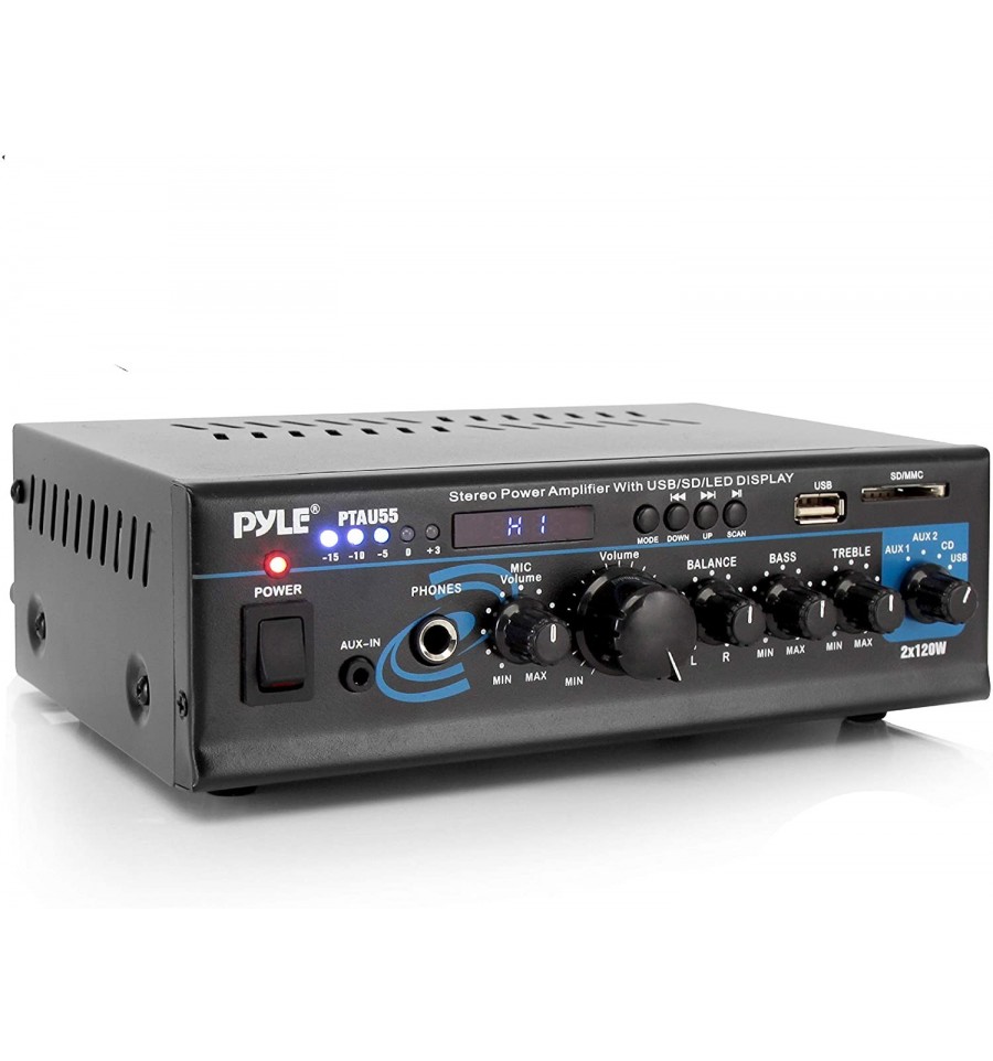 Pyle PTAU55 Amplificador Hifi Estereo 2 X 120W con FM y reproductor MP3