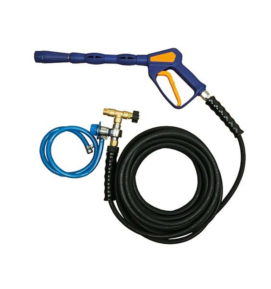 Pistola de espuma autodilucional de alta presión para acoplar una lanza estándar de enjuague. Manguera de alta presión de 15 metros. Características técnicas :1.9 (M22 H Y 2 x M22 M)