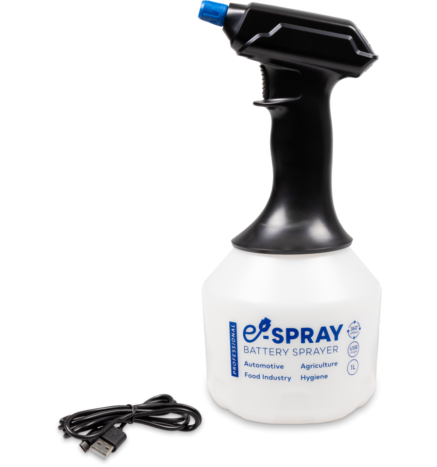 El E-Spray de 1 litro es un pulverizador eléctrico que funciona de forma completamente autónoma y está equipado con una batería de iones de litio de alto rendimiento.