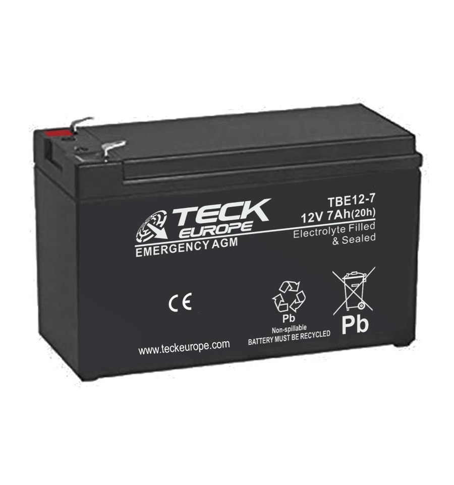 La batería AGM Teck Europe TBE12-7 de 7Ah y 12V ofrece tecnología AGM sellada sin necesidad de mantenimiento. Especialmente diseñada para aplicaciones críticas como idónea para telecomunicaciones y respaldo de datos, brinda un rendimiento estable, seguridad máxima y alta resistencia ante vibraciones y ciclos profundos.