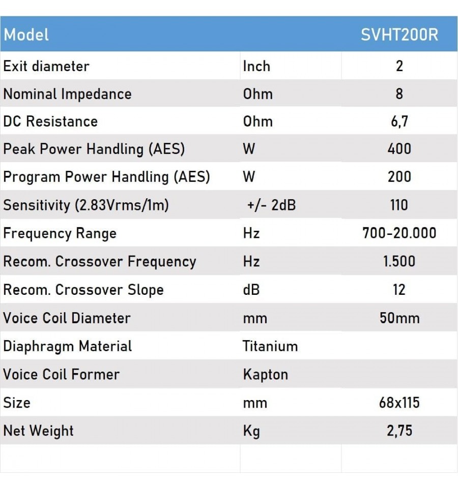 Compra online Seven Soundvector SVHT200R Tweeter de compresión 2” con difusor exponencial H40 x V40 Potencia Nominal 200W. Envío inmediato a toda España.