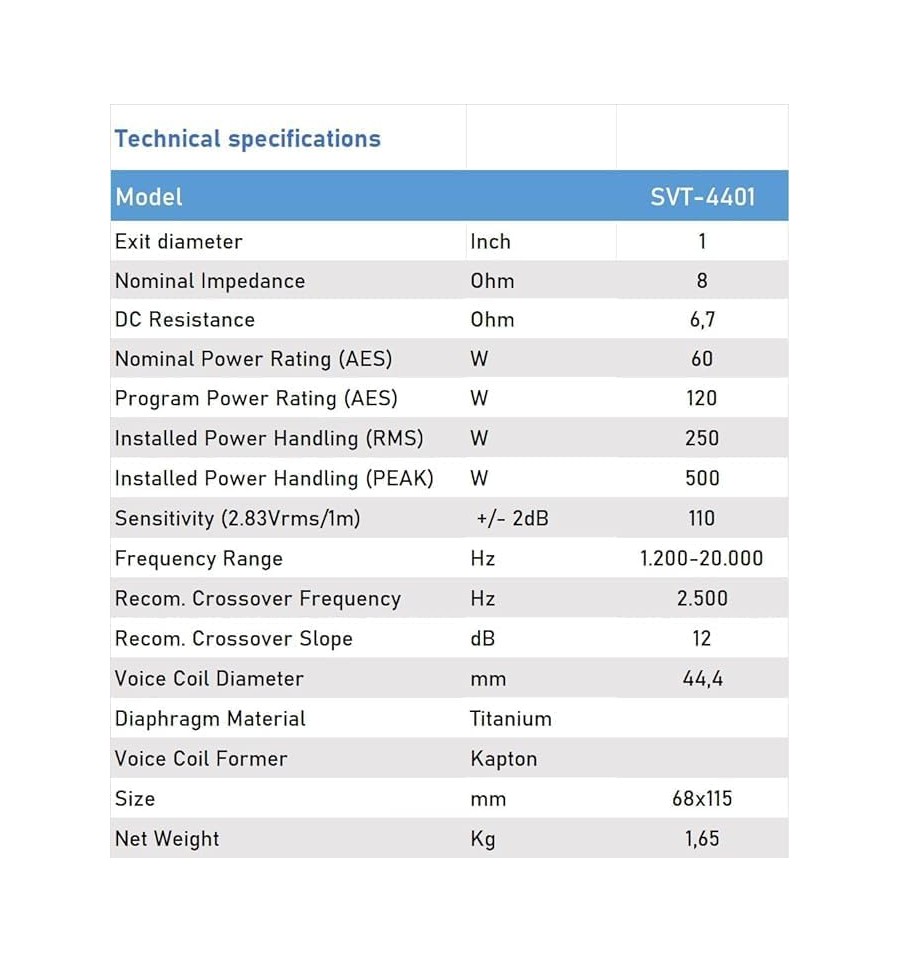 Comprar Seven Soundvector SVT4401-B Driver de Compresión Tweeter Motor de Agudos Diafragma de Titanio 44mm Sensibilidad 110dB Potencia Nominal 60W en Fonomovil