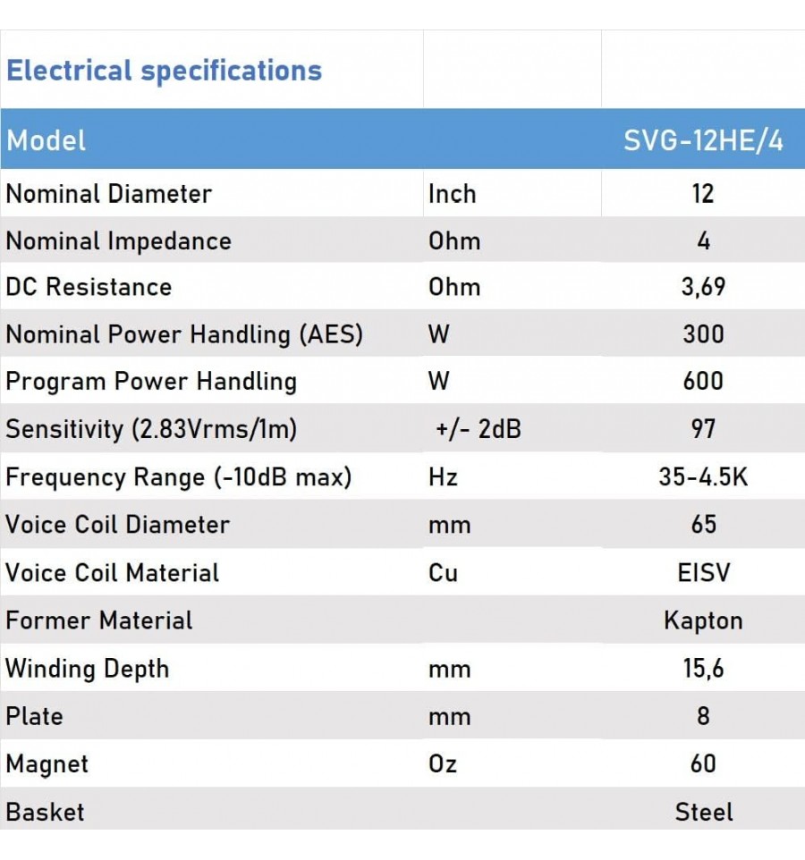 Compra online Seven Soundvector SVG12-HE/4 Woofer 12S Pulgadas Altavoz Profesional de Grave Medio-Grave 4 Ohm 300W AES 600W. Envío inmediato a toda España.