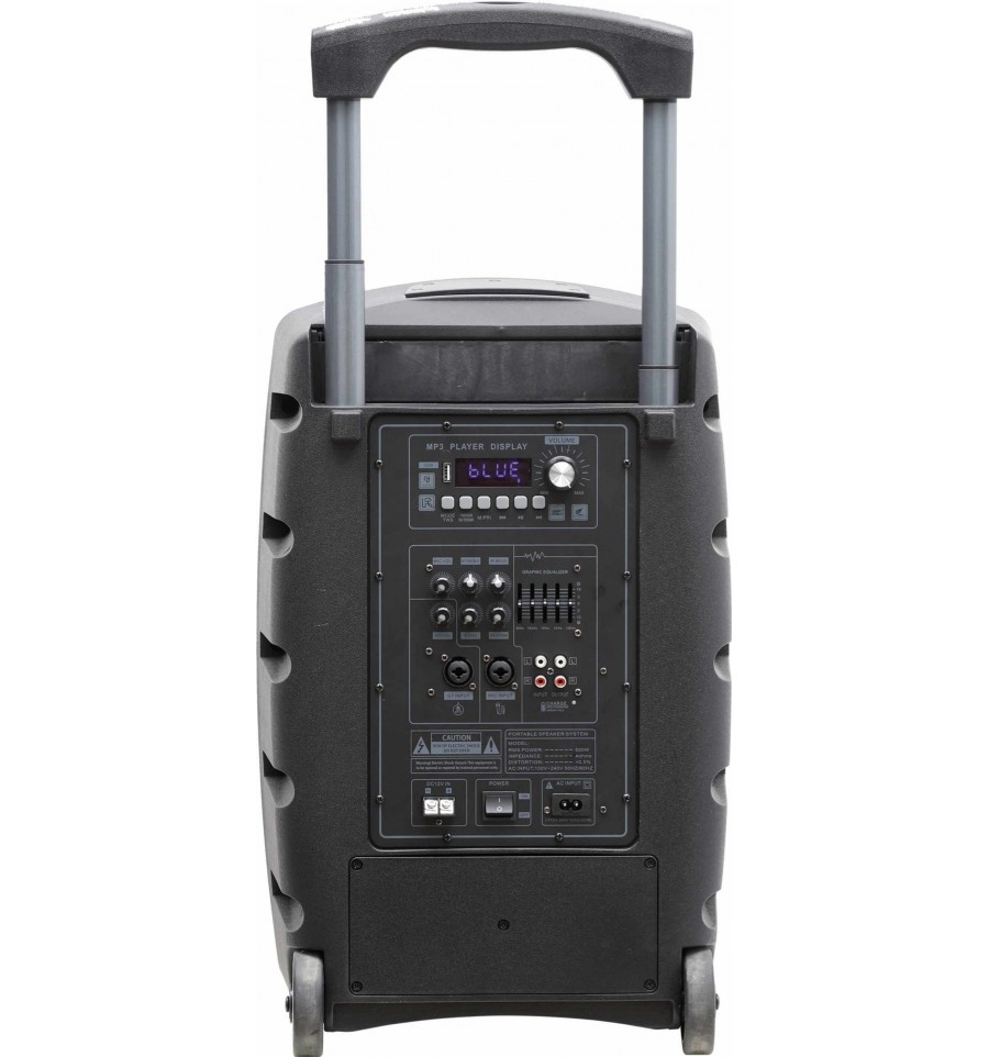 Comprar en tienda Física GLEMM BM 12160 Altavoz profesional amplificado de 12" equipado con doble micrófono radio UHF y mando a distancia y batería recargable en Fonomovil Sevilla.