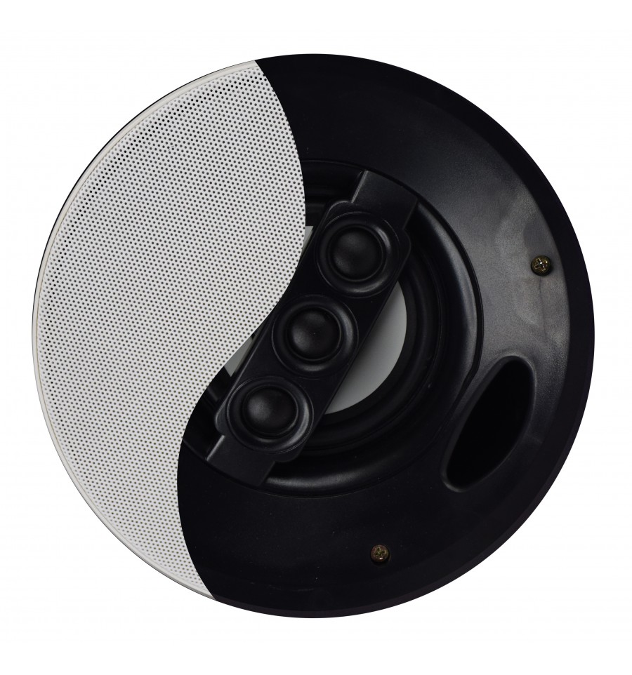Altavoz de alta calidad con woofer de 5" y triple tweeter de 1". El excelente rendimiento acústico está garantizado por la caja de resonancia y los orificios de ventilación que realzan las notas bajas. Un crossover interno distribuye adecuadamente el audio al woofer y a los 3 tweeters. La parrilla es magnética con un borde prácticamente inexistente.