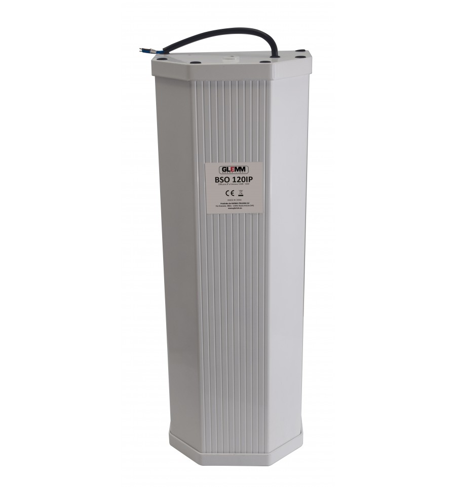 Diseñado también para instalaciones en exteriores, este altavoz de columna cuenta con una rejilla metálica de color blanco que esconde 4 altavoces de 5,5" capaces de generar una potencia de 120W en conexiones de 100V.
