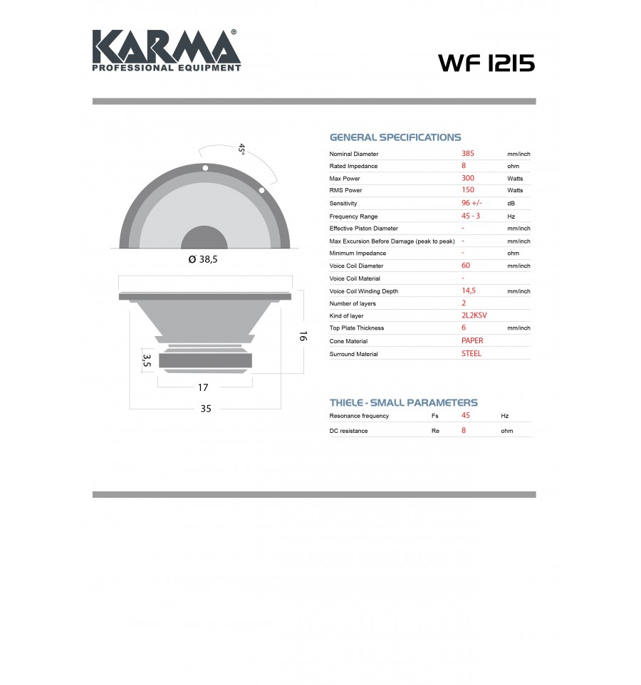 Compra online Karma WF 1215 Woofer de 15" 300w a 8 ohmios. Envío inmediato a toda España.