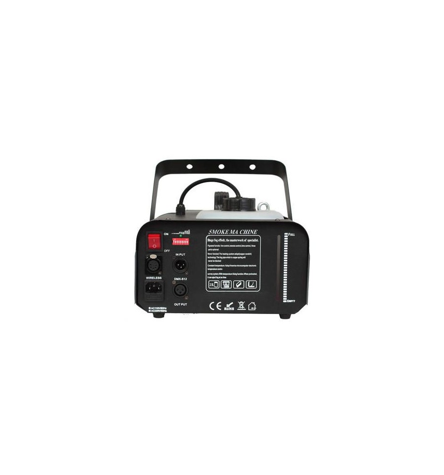 Máquina de humo de altas prestaciones, para una utilización profesional. Los dos mandos incluidos, son utilizables simultáneamente. La función de control, es innovadora, permite controlar automáticamente el humo teniendo un gran confort de trabajo.