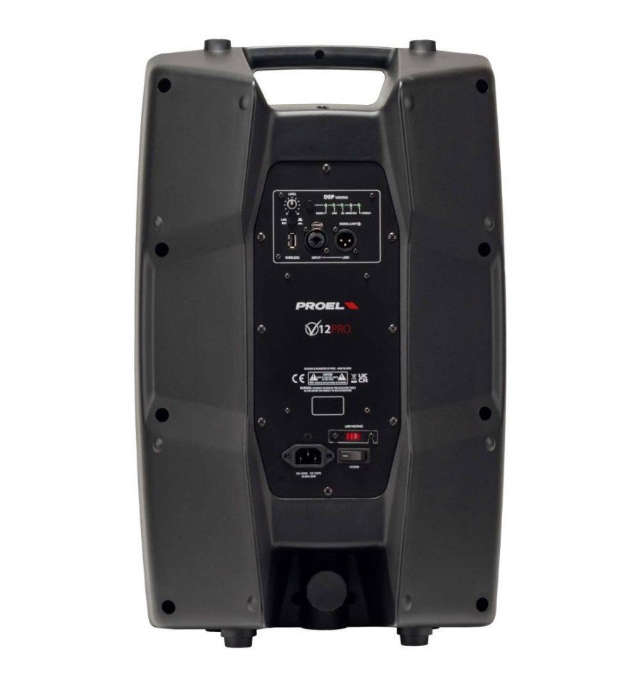 Gracias a la entrada MIC/LINE y a la entrada USB INALÁMBRICA para el uso de sistemas de micrófonos PROEL U24, el V PRO se puede utilizar en una variedad de aplicaciones sin equipo externo.