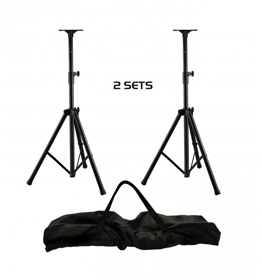 Fabricado en metal con capacidad de elevación de 1,1 m a 1,8 m. Cada soporte soporta un peso aproximado de 60 kg y está recubierto de pintura en polvo negra. Además de los dos soportes, se incluye una bolsa para facilitar su transporte y dos bases para fijar altavoces sin la clásica copa de 35 mm.