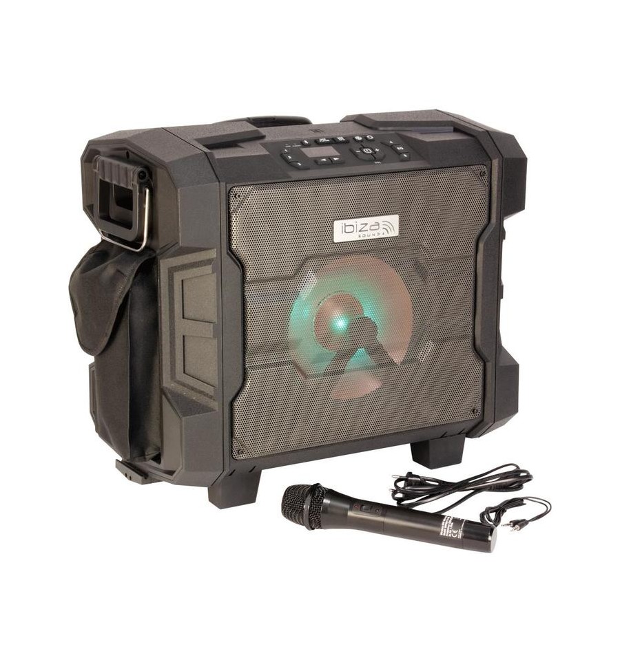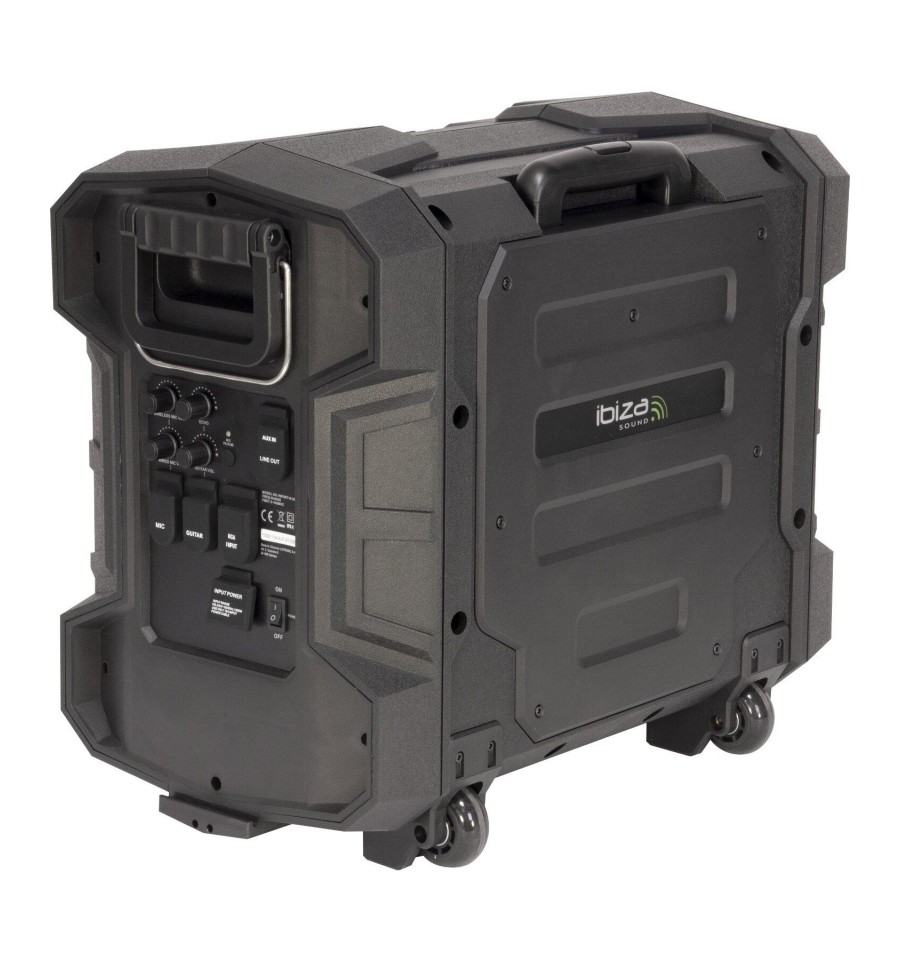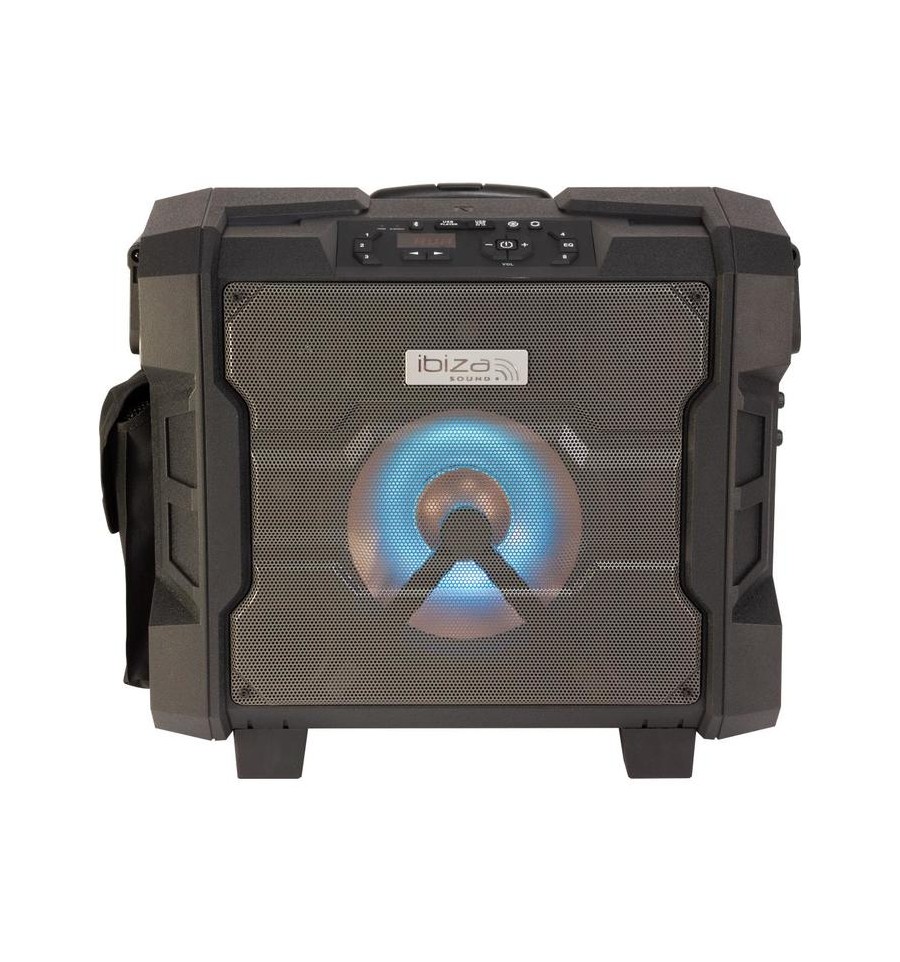 Compra online IBIZA SOUND WPORT10-300 Altavoz portátil amplificado 2x10" 300W preparado para la intemperie, BLUETOOTH/FM/USB/MICRO UHF, ruedas y trolley. Envío inmediato a toda España.