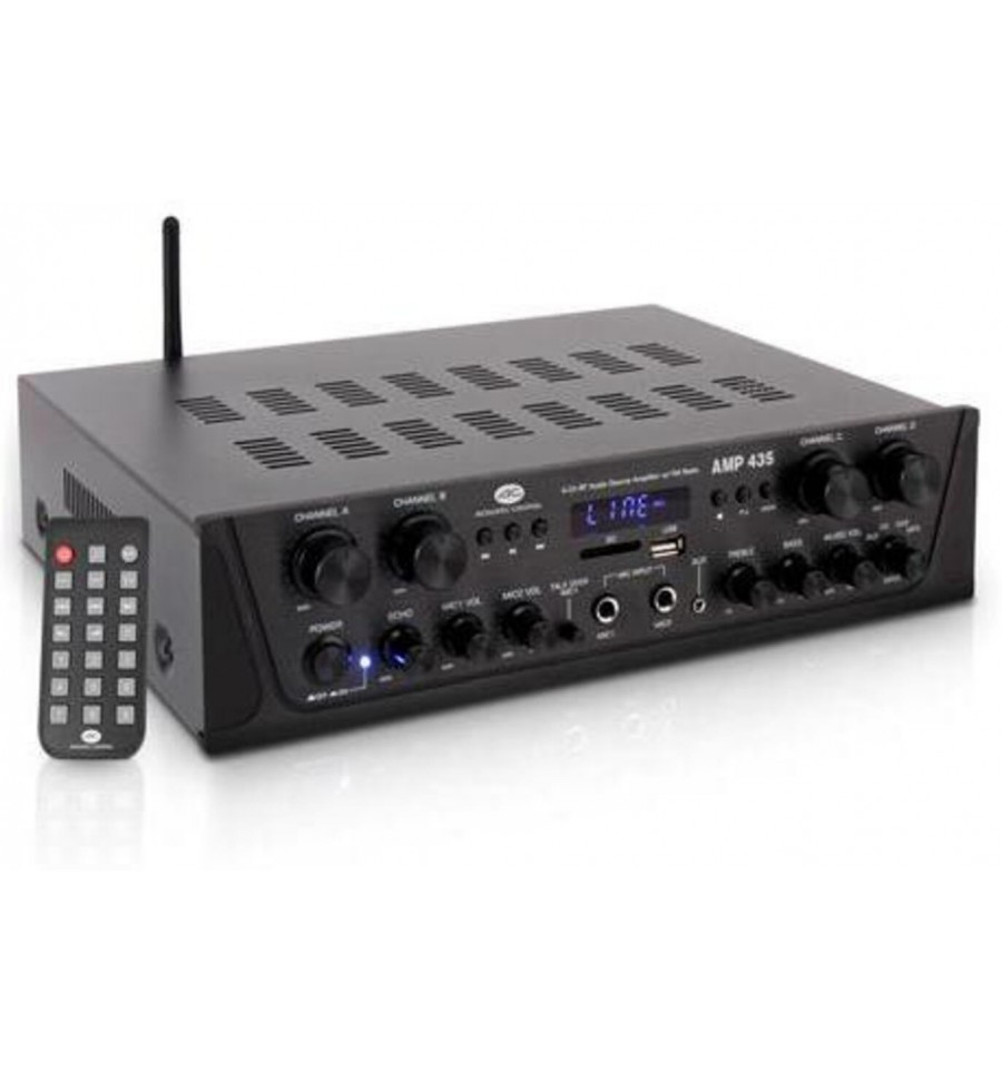 Compra online Acoustic Control AMP 435 Amplificador Hi-Fi estéreo profesional para 4 zonas independientes, bluetooth, MP3 por USB y radio FM, incluye mando a distancia. 4x35W@4ohm