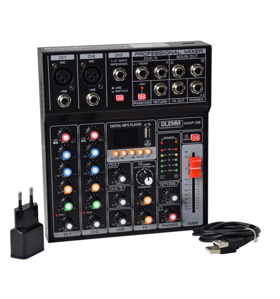Comprar GLEMM MXP 05 Mezclador profesional de micrófono de 5 canales en Fonomovil.