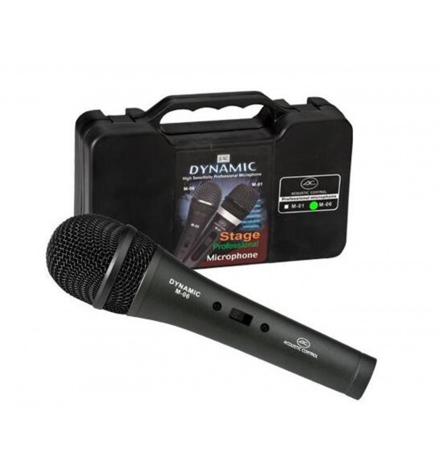Compra online Acoustic Control M 06 Micrófono profesional de mano unidireccional con maleta de transporte, pinza, bolsa y cable XLR-JACK de 5m. Envío inmediato a toda España.