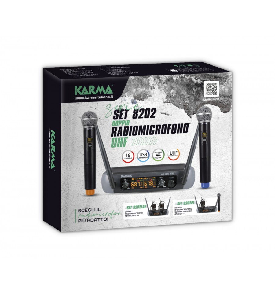 Compra online Karma SET 8202PL Micrófono inalámbrico UHF con micrófono de mano y auriculares UHF, 48 canales, alcance 50m. Envío inmediato a toda España.
