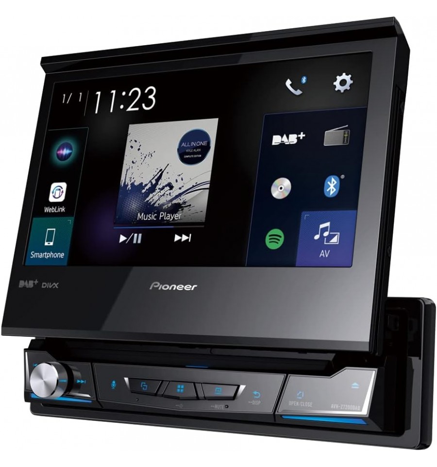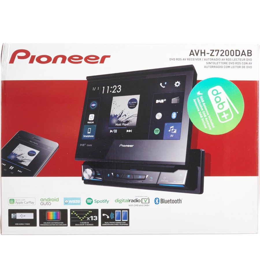 Compra online Pioneer AVH-Z7200DAB Reproductor multimedia con pantalla táctil desplegable resistiva Clear Type, color real de 24 bits y 7 pulgadas 1-DIN, con conectividad para smartphone a través de un cable USB y compatible con Apple CarPlay, Android Auto, radio digital DAB/DAB+, Waze (a través de Apple CarPlay/Android Auto), Bluetooth y un GEQ de 13 bandas. Envío inmediato a toda España.