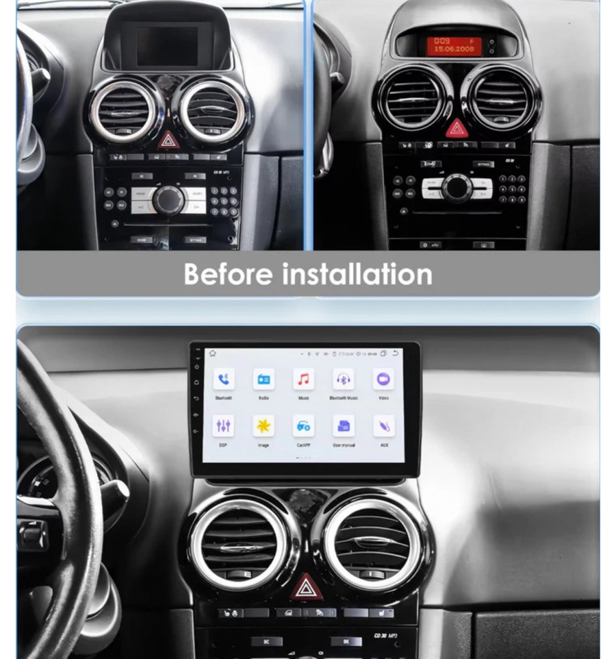 Moderniza tu Opel Corsa D (2007-2012) con nuestra pantalla multimedia HD de 9 pulgadas, diseñada para integrarse perfectamente en el salpicadero original. Lleva la tecnología más avanzada a tu coche con Apple CarPlay y Android Auto, permitiéndote acceder a Google Maps, Spotify, llamadas, mensajes y más de forma segura y cómoda.