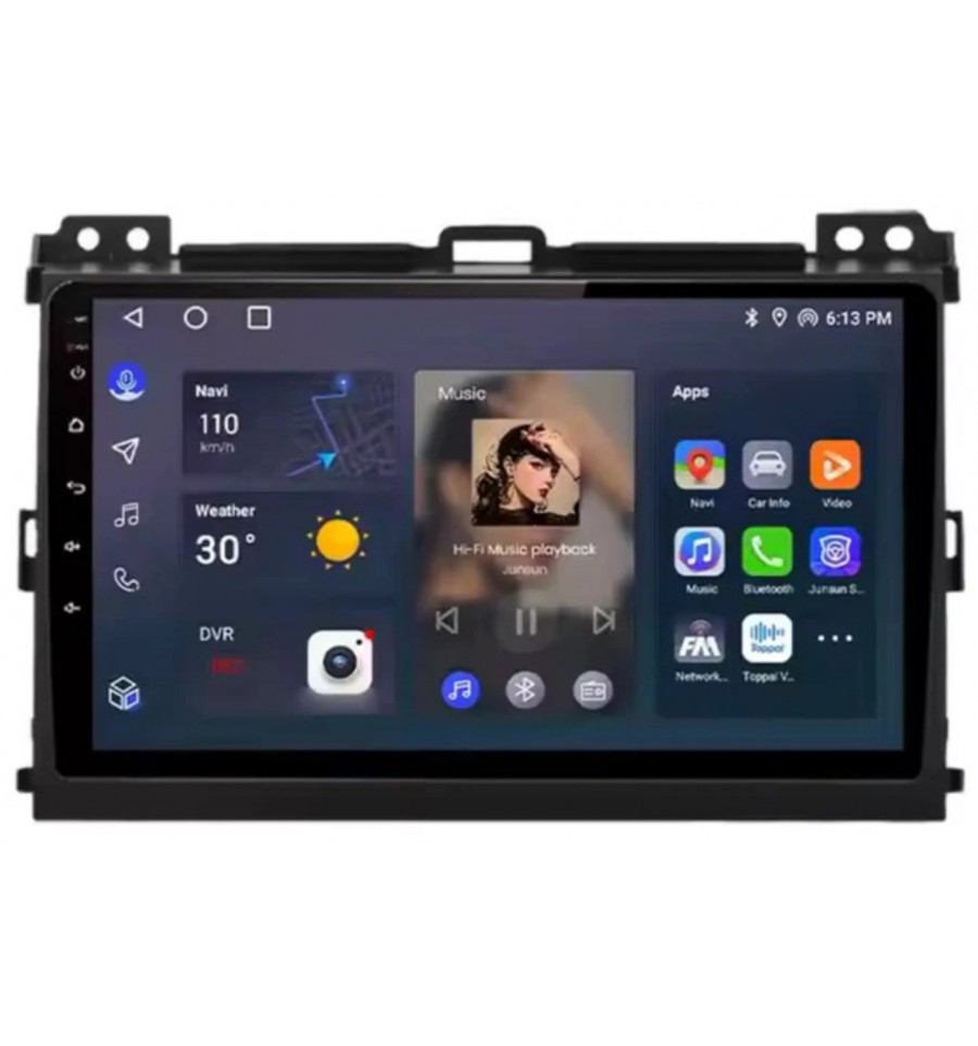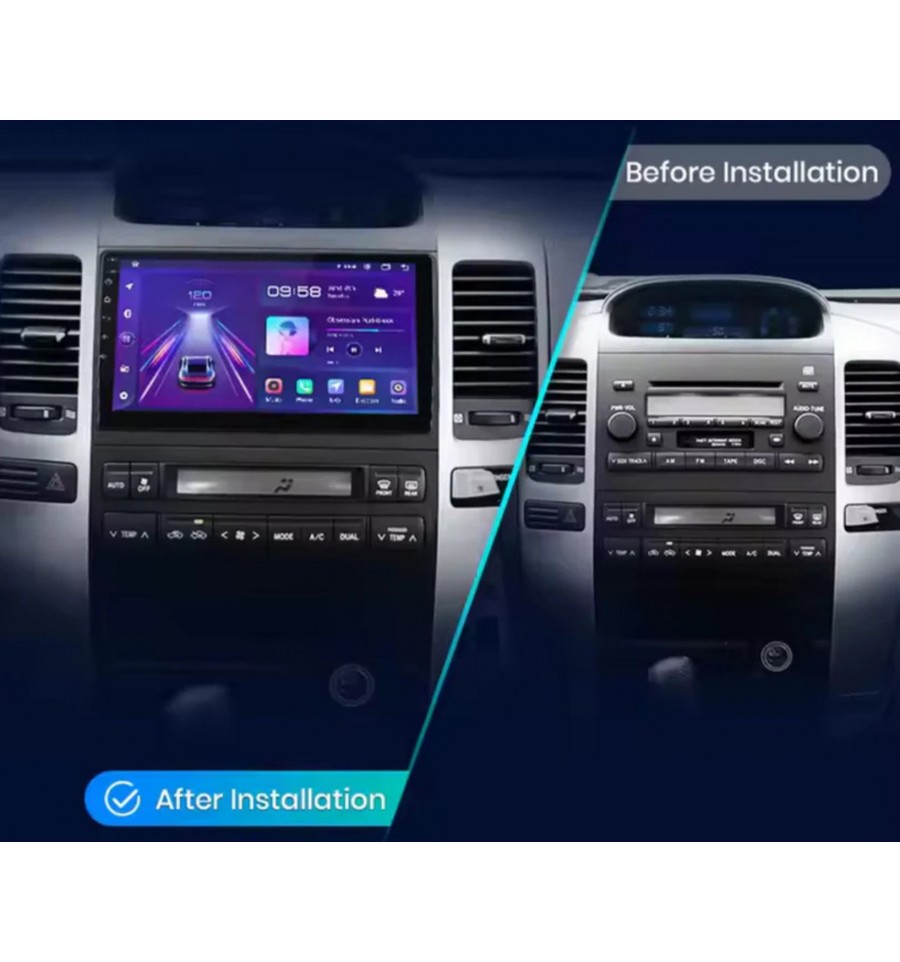 Moderniza tu Toyota Land Cruiser 120 (2004-2009) con nuestra pantalla multimedia de 9 pulgadas HD, diseñada para encajar perfectamente en el salpicadero sin necesidad de modificaciones. Con Apple CarPlay y Android Auto inalámbricos, disfrutarás de navegación GPS, multimedia, Bluetooth y WiFi, mejorando tu experiencia de conducción con tecnología avanzada.